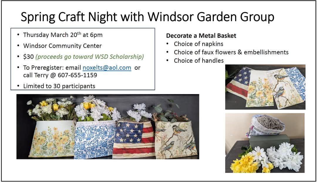 The Windsor Garden Group is known for their fun craft classes. They're also known for filling them up quickly. Call now to reserve your spot(s) in our March 20th class.